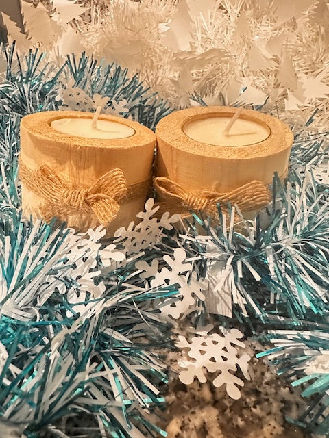 Bougie chauffe-Plat + bougeoir en bois